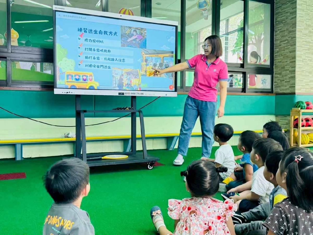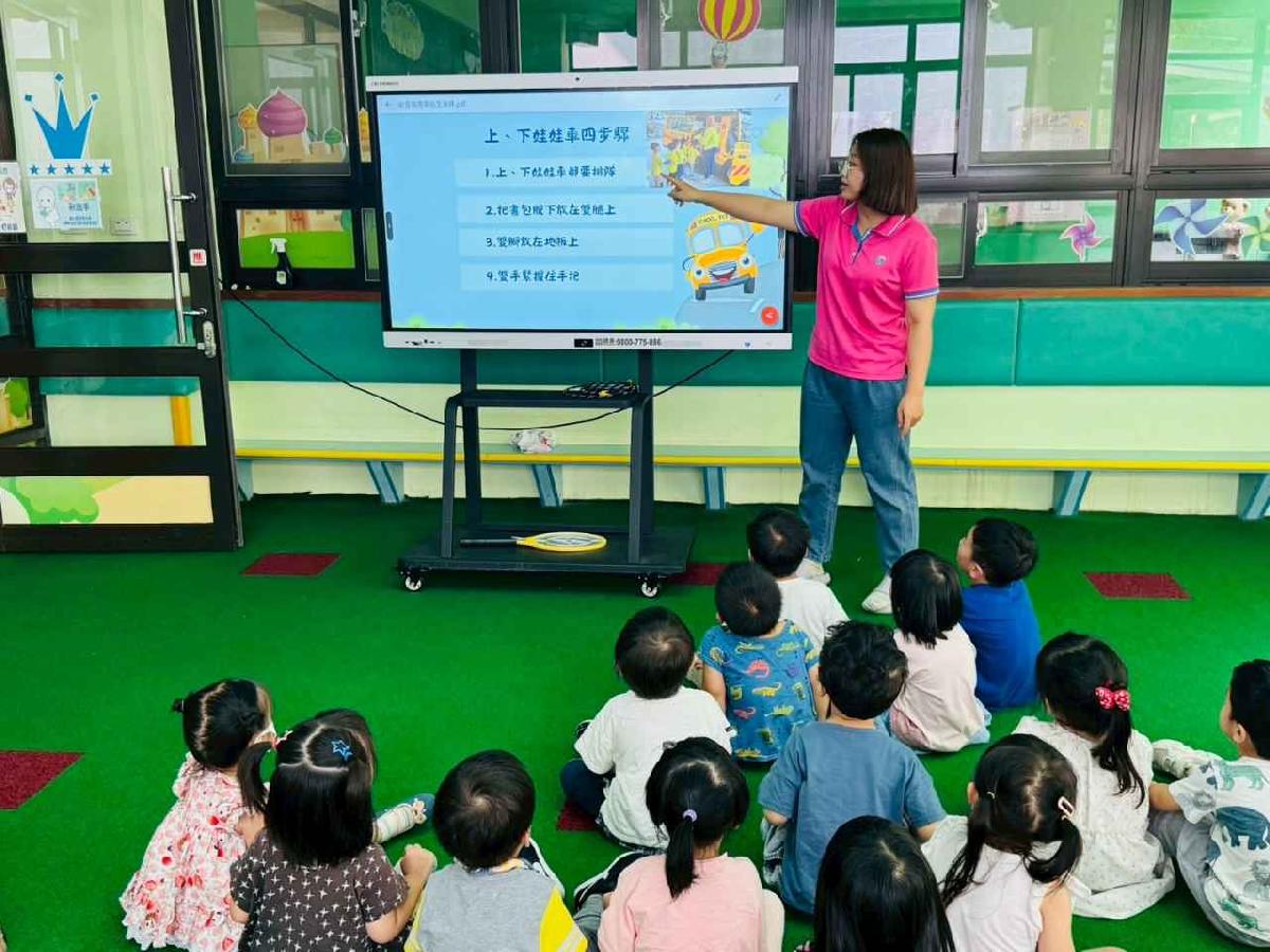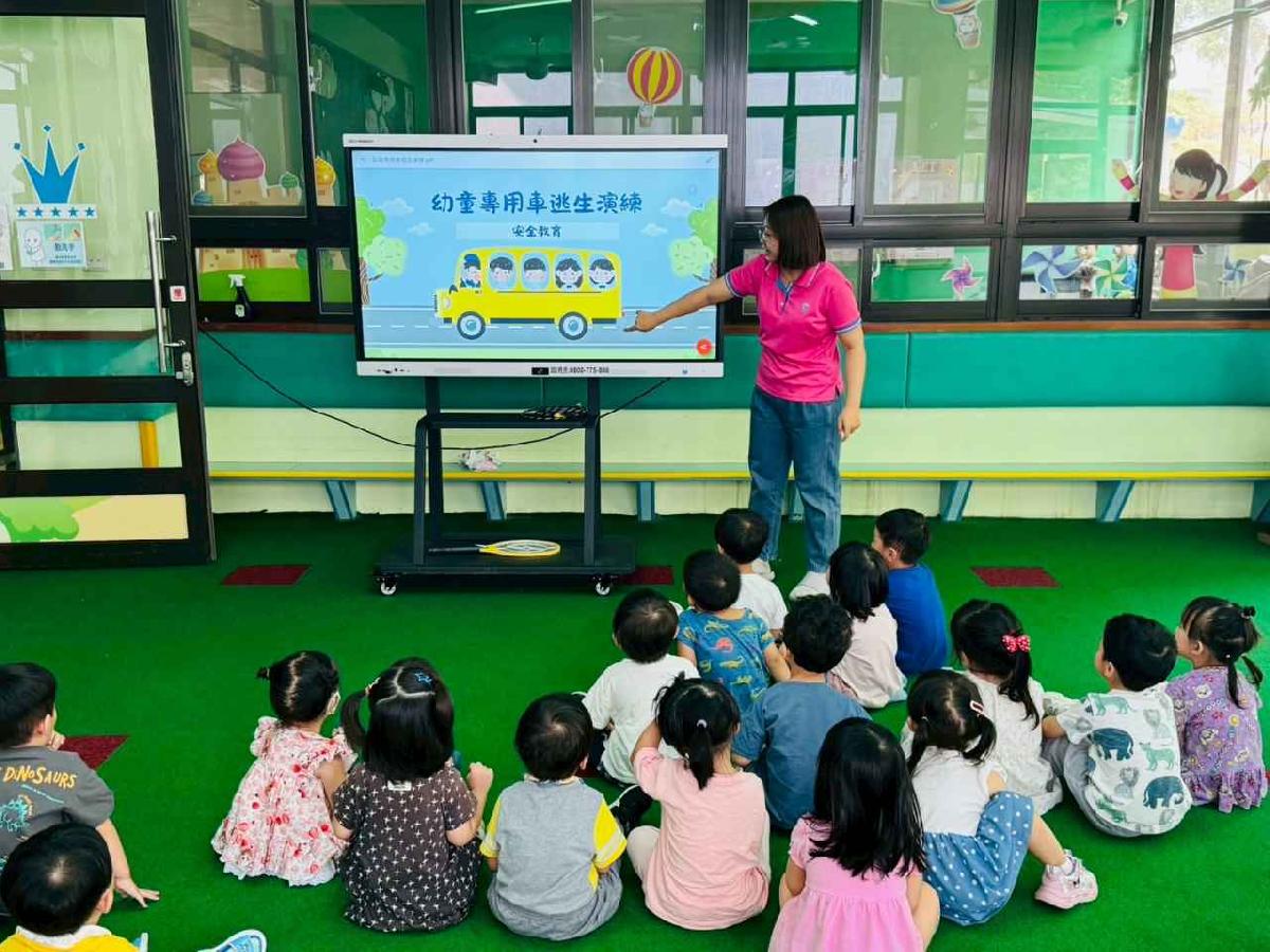 娃娃車安全演練 為了加強孩子們的交通安全觀念,本園今天進行娃娃車安全演練。孩子們實際練習了如何排隊上車、安靜就座、繫好安全帶,以及正確下車的方法。同時也模擬了突發狀況,提醒孩子要冷靜並遵照老師指示行動。透過演練,讓幼兒更熟悉乘車安全步驟,建立正確的安全習慣。