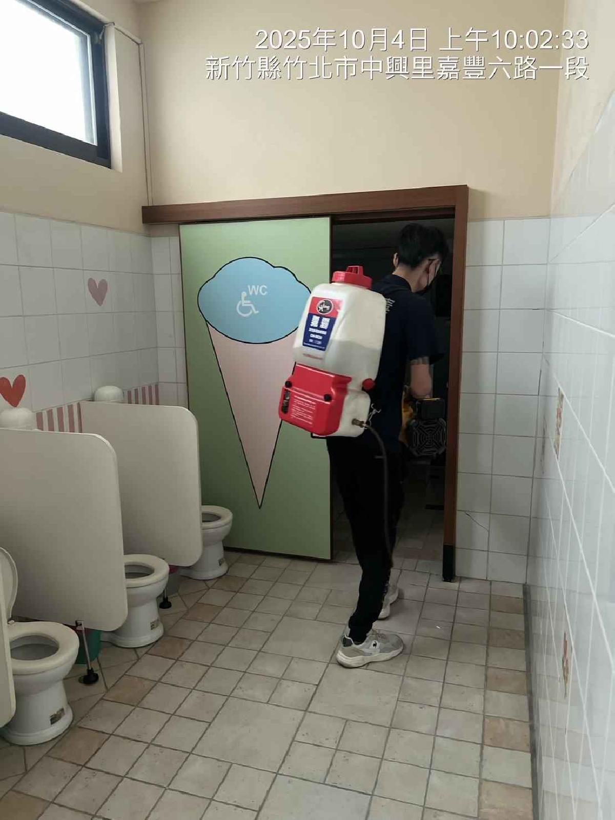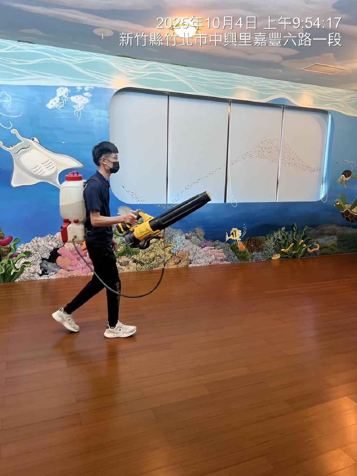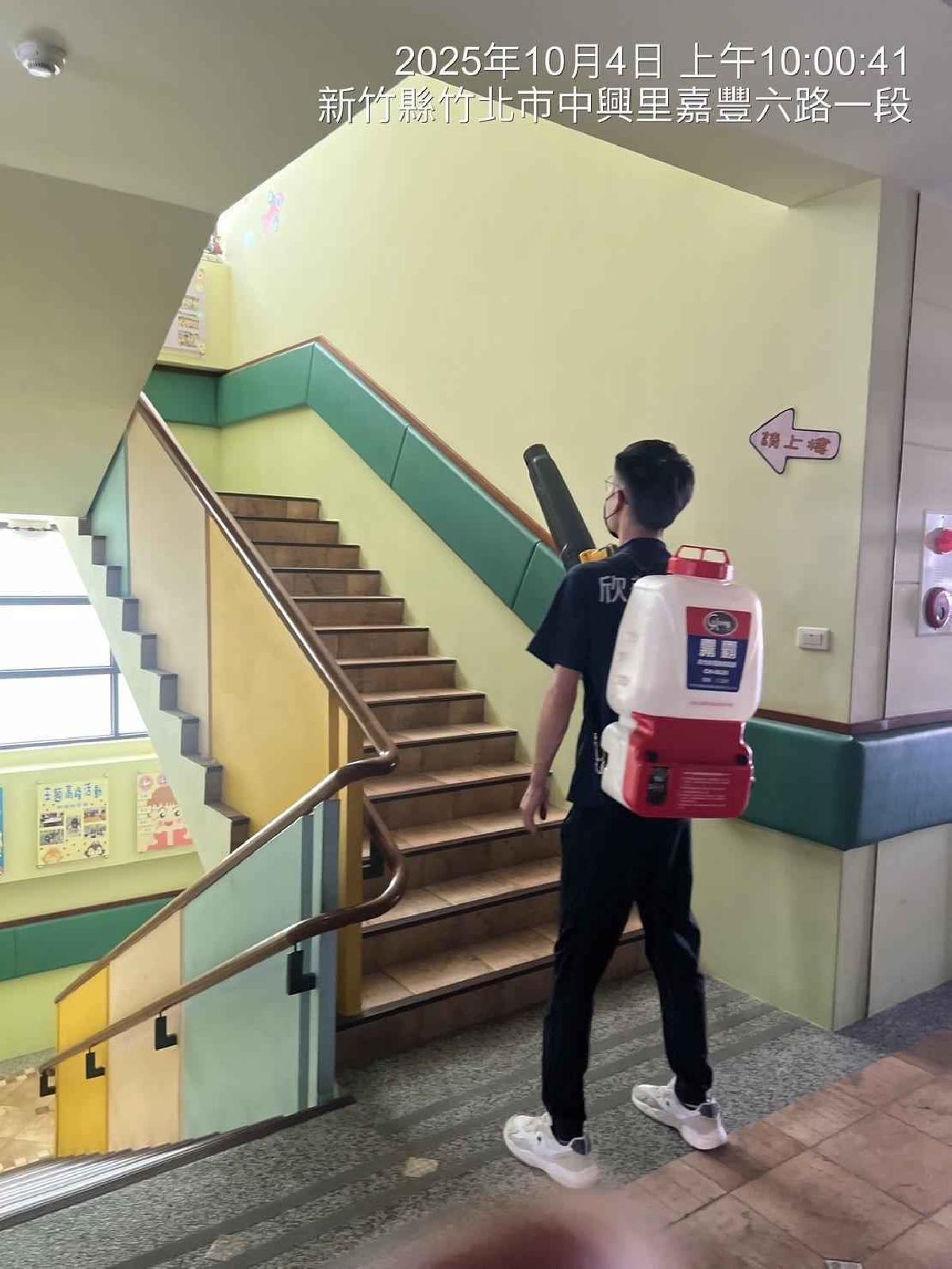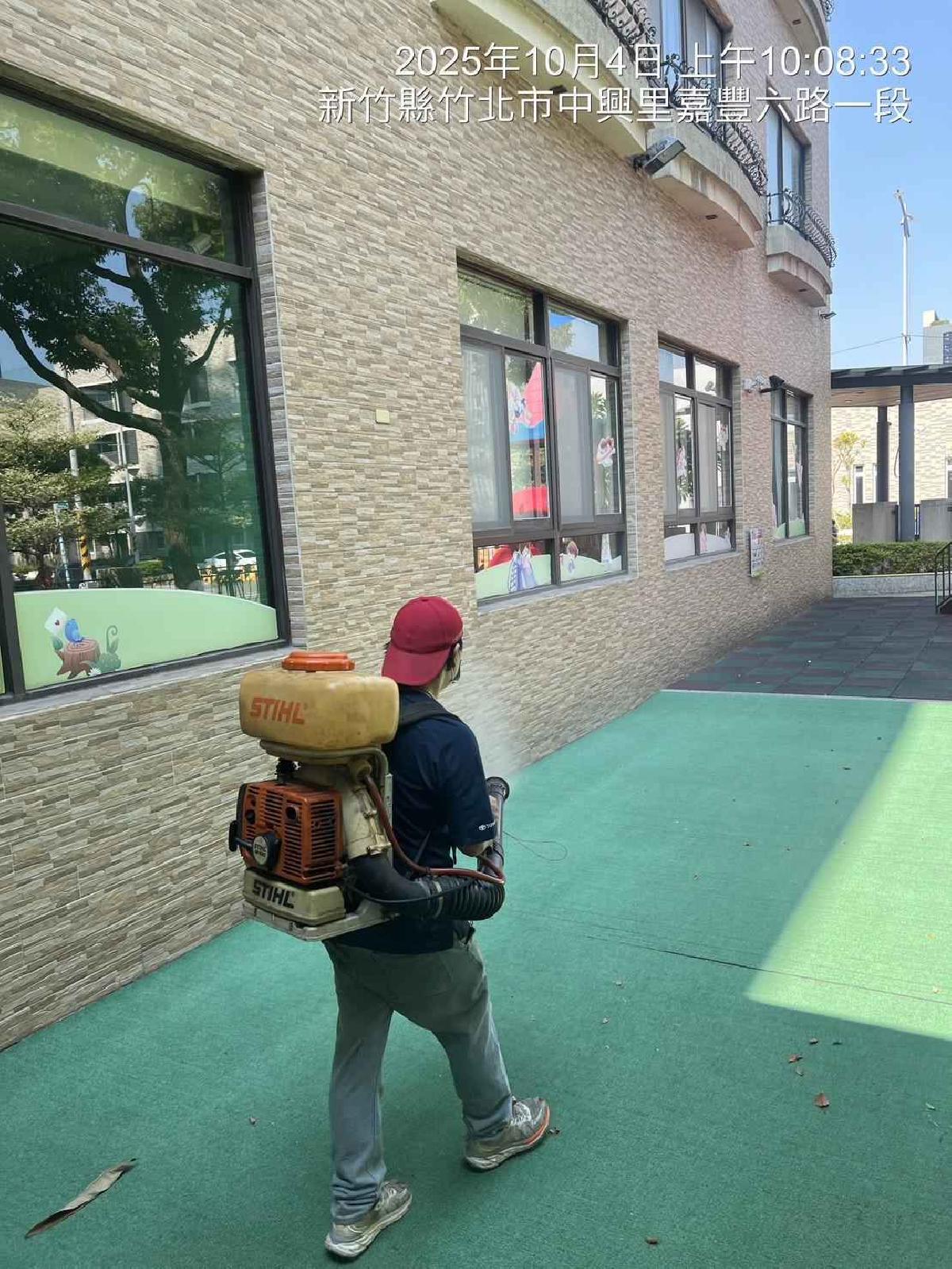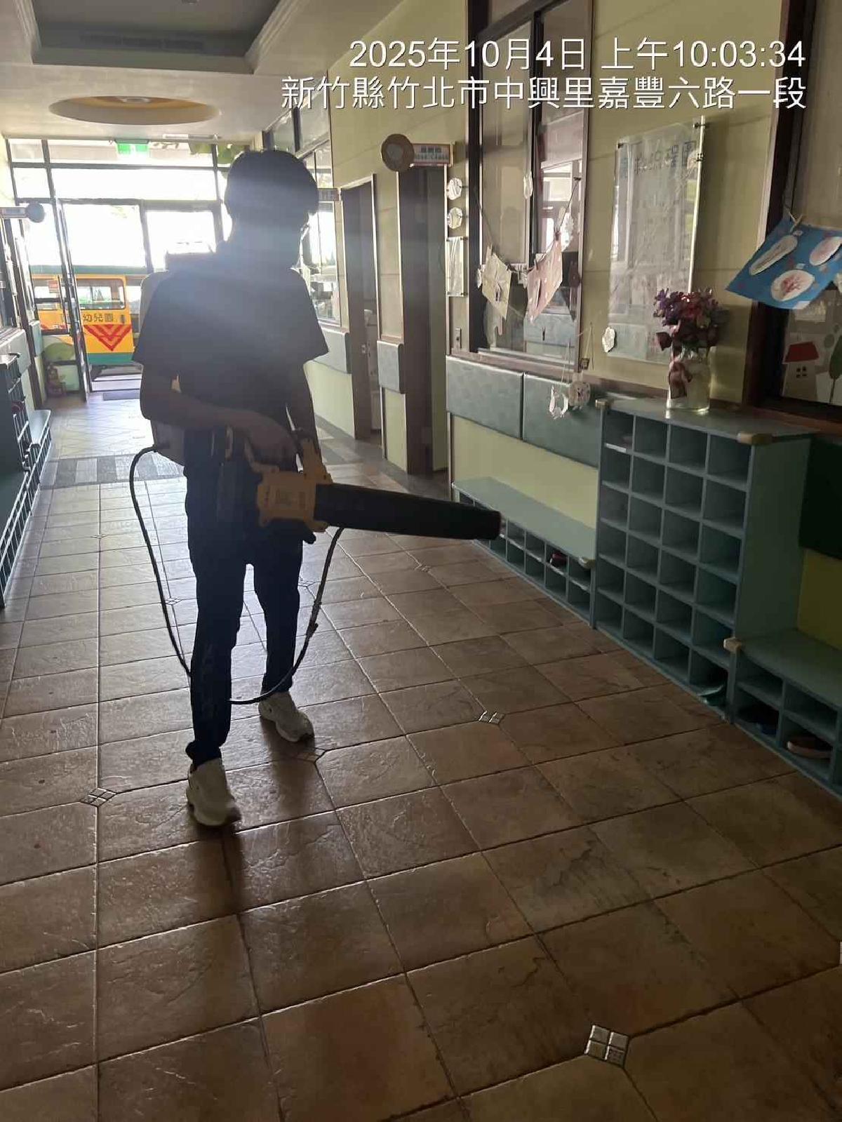 本園利用假日時間,特別聘請專業廠商進行全園環境消毒作業,包含教室、走廊、廁所及遊戲區,確保幼兒返園後有一個安全、乾淨的學習環境。