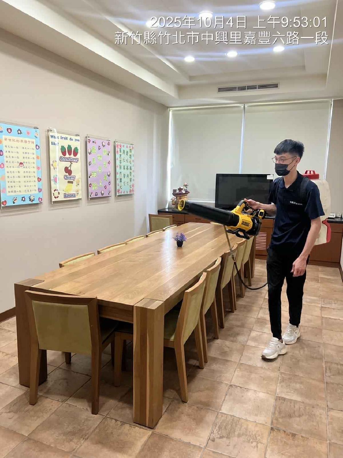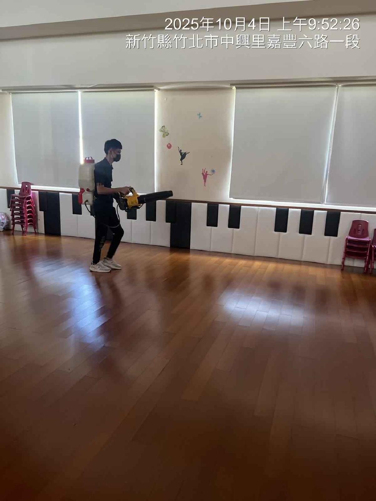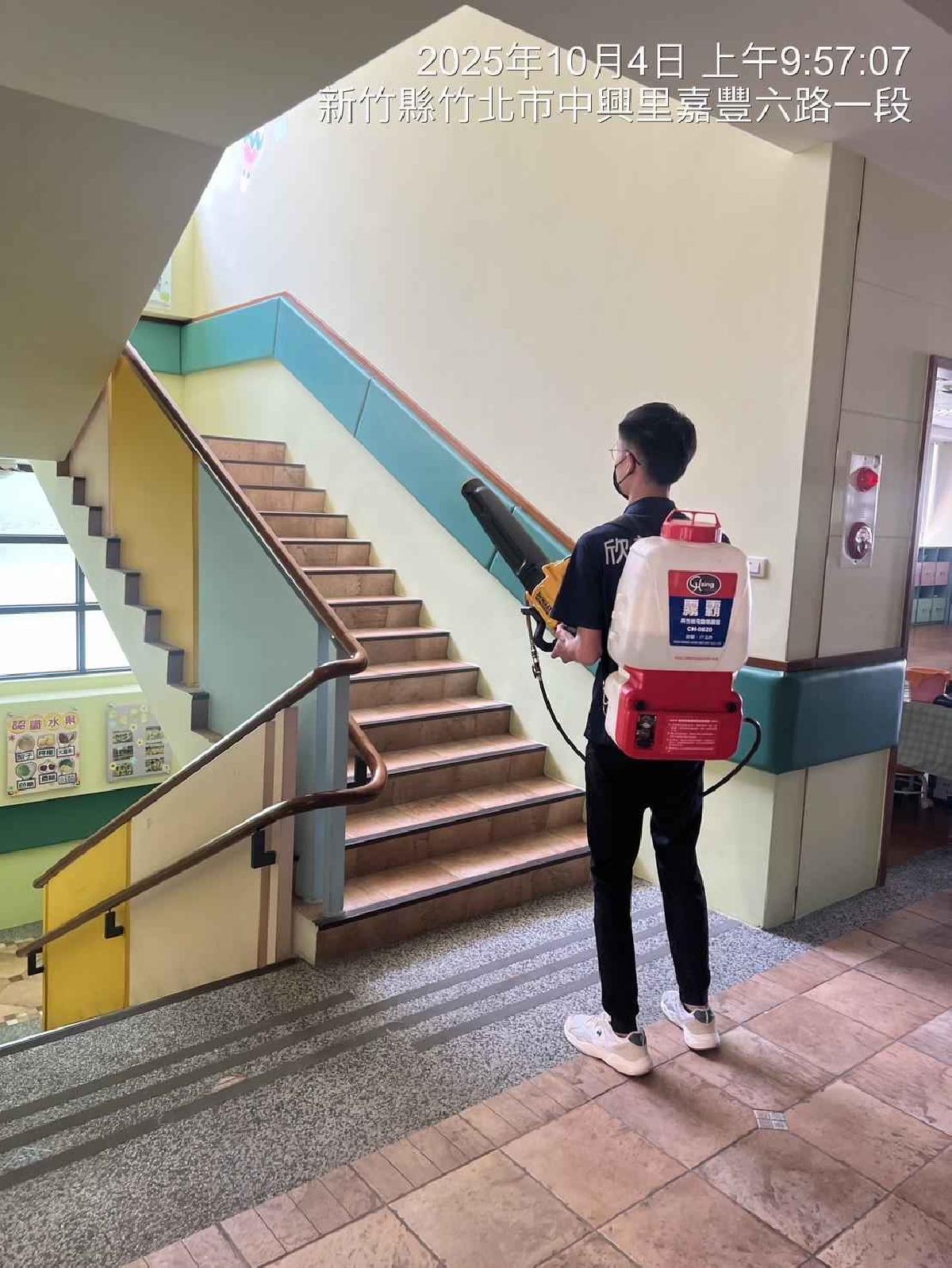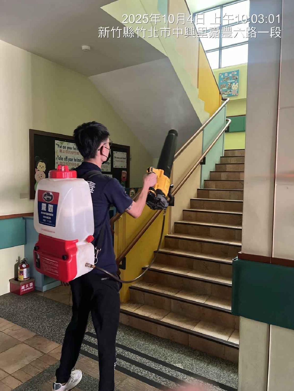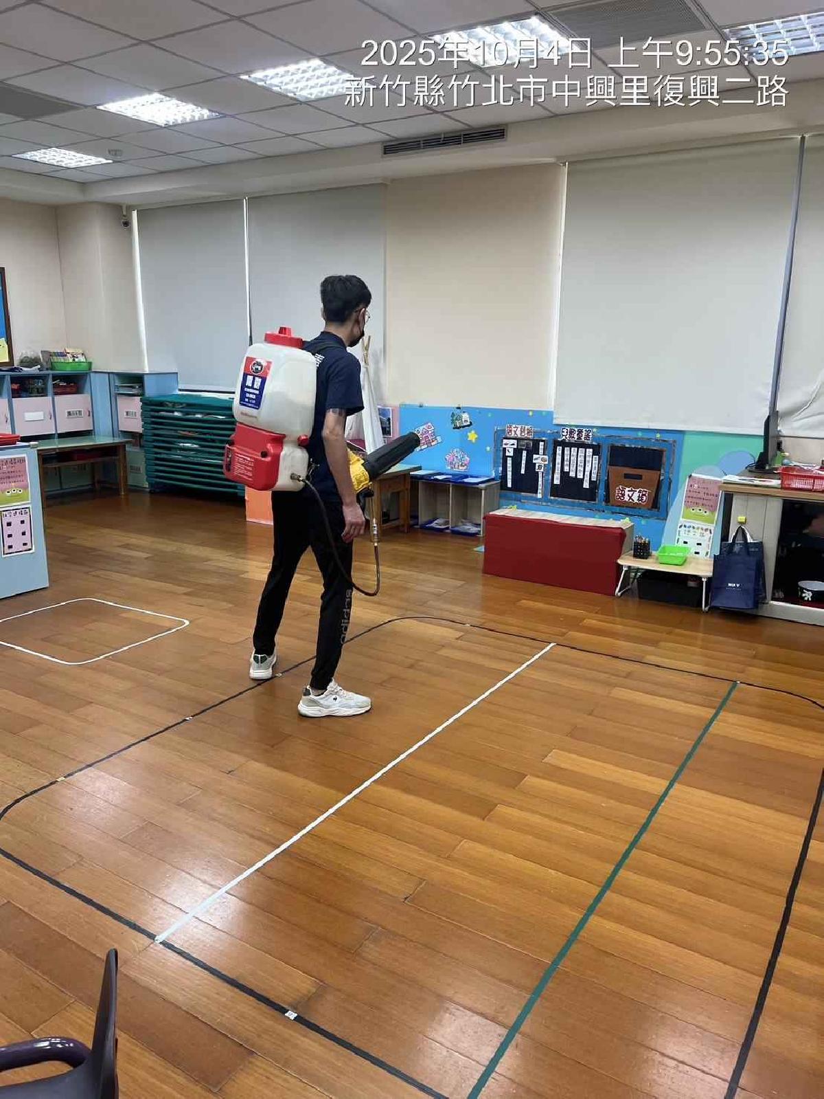 本園利用假日時間,特別聘請專業廠商進行全園環境消毒作業,包含教室、走廊、廁所及遊戲區,確保幼兒返園後有一個安全、乾淨的學習環境。