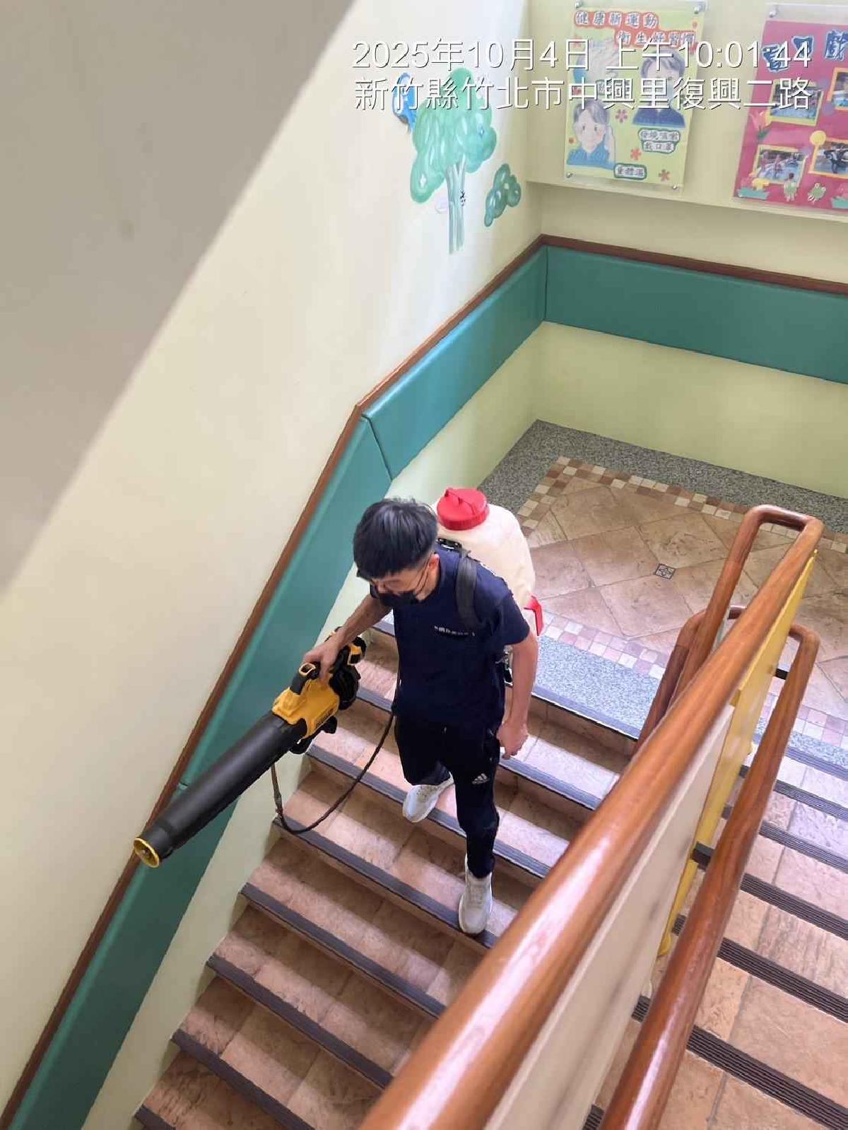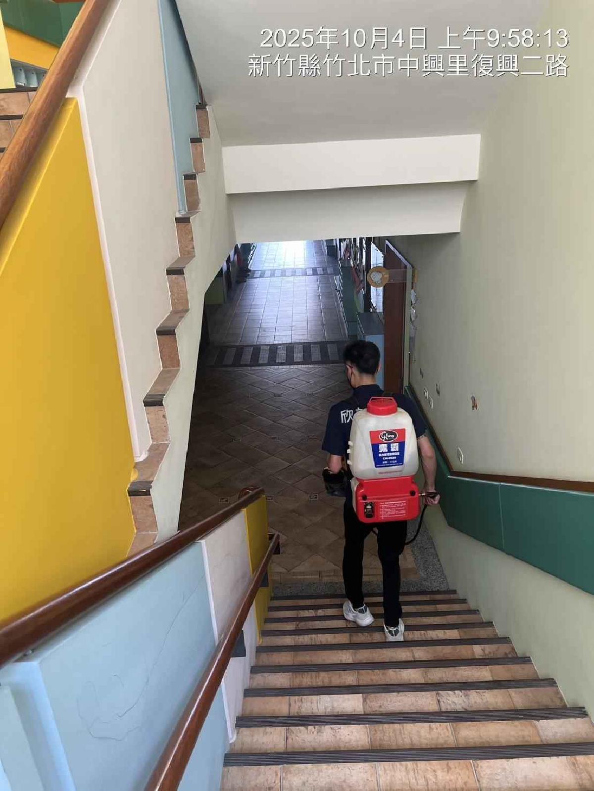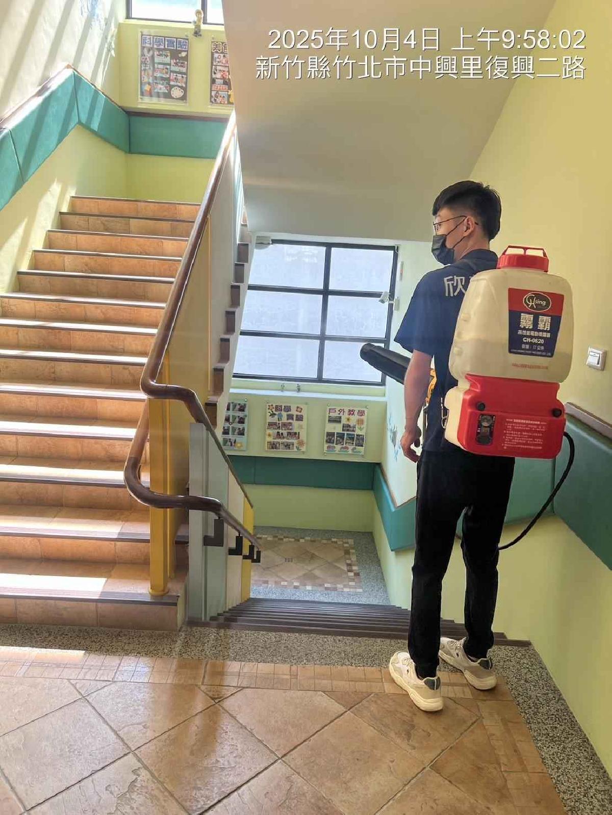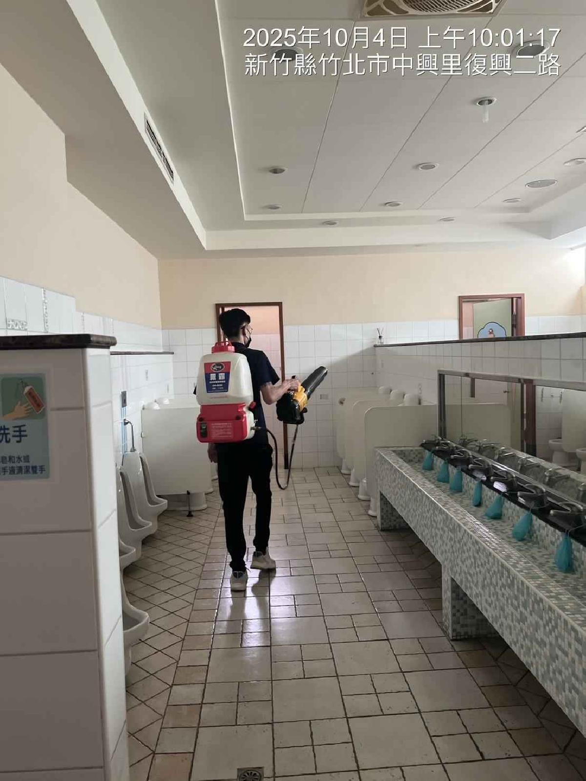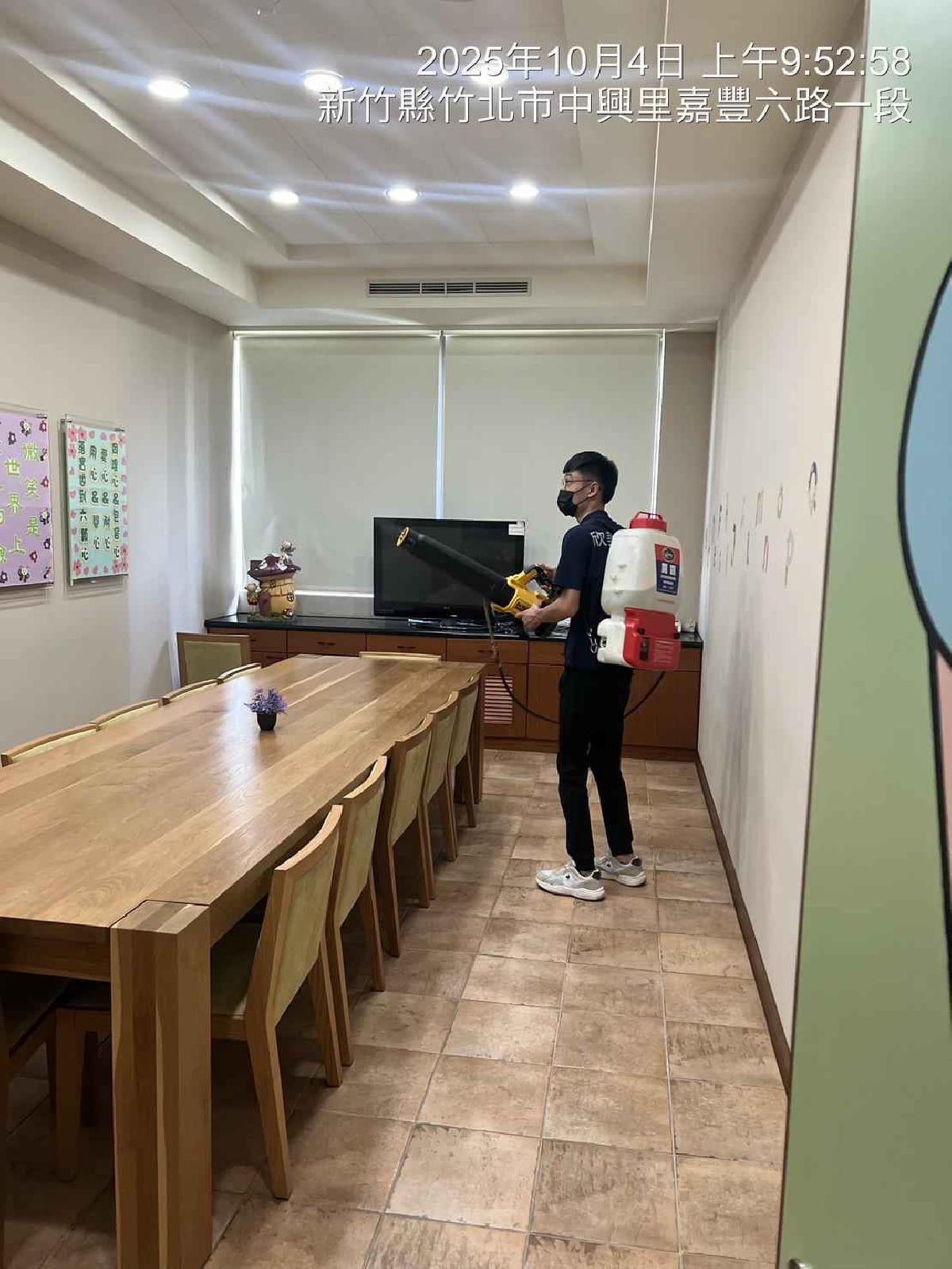 本園利用假日時間,特別聘請專業廠商進行全園環境消毒作業,包含教室、走廊、廁所及遊戲區,確保幼兒返園後有一個安全、乾淨的學習環境。