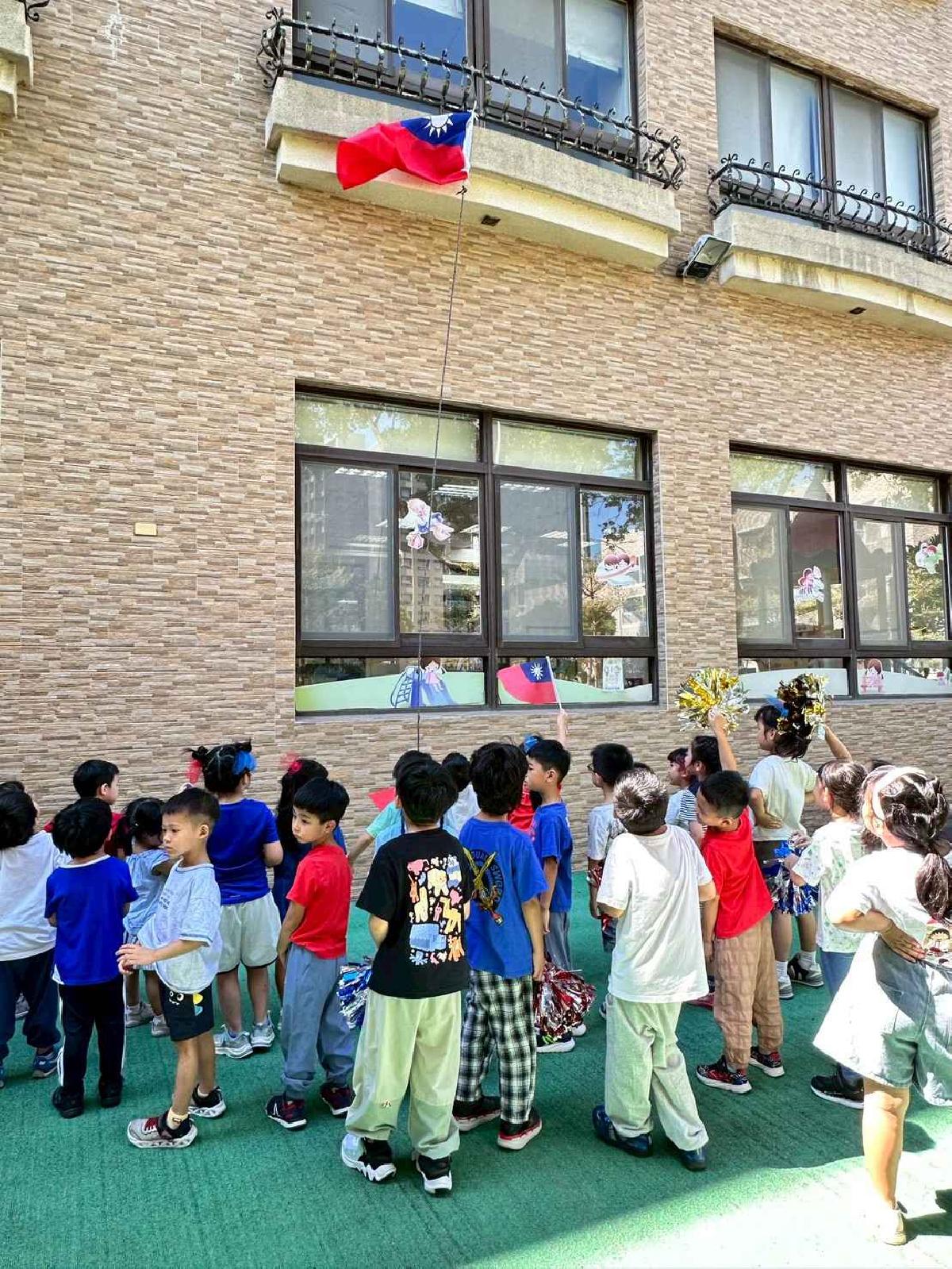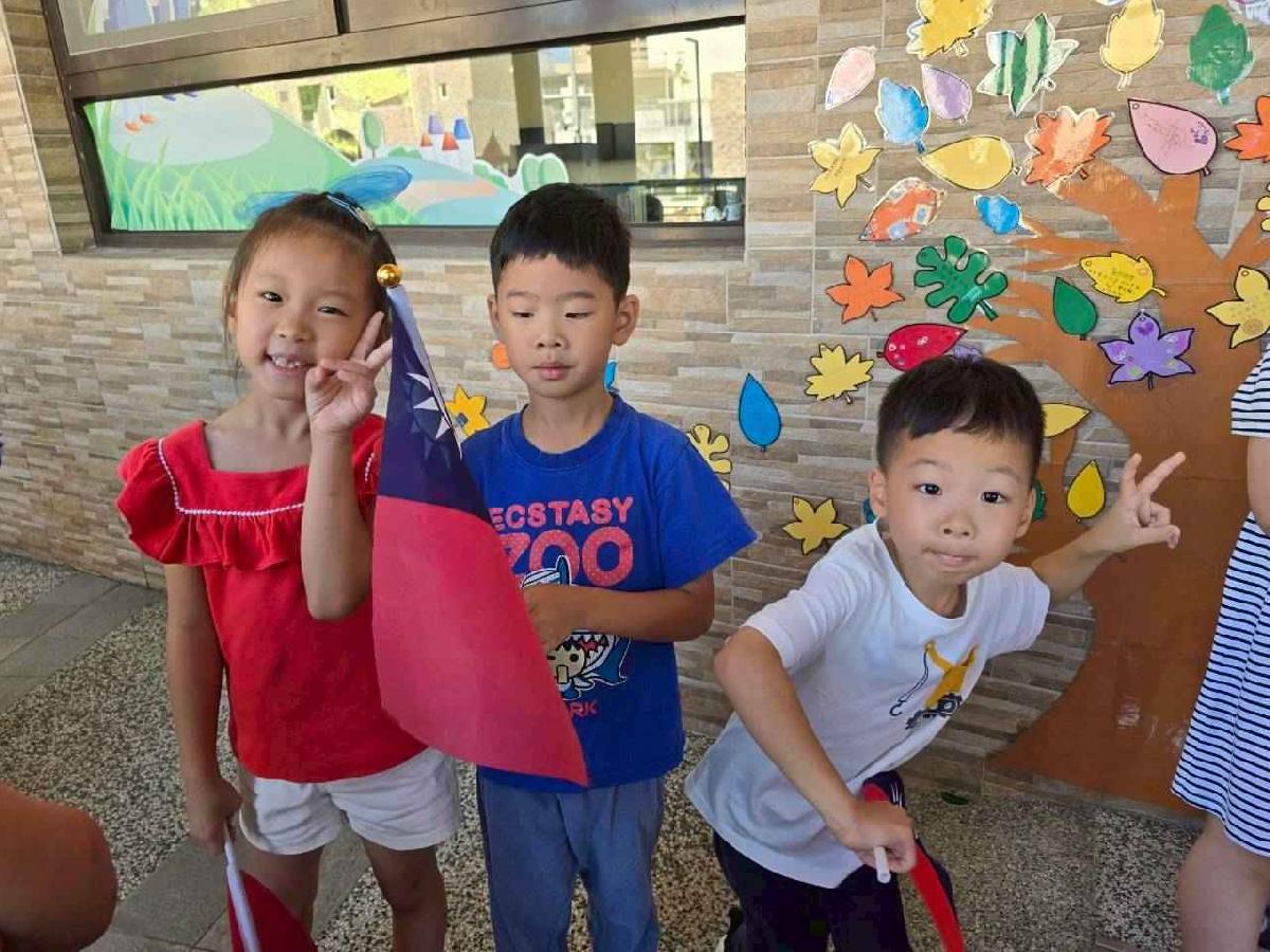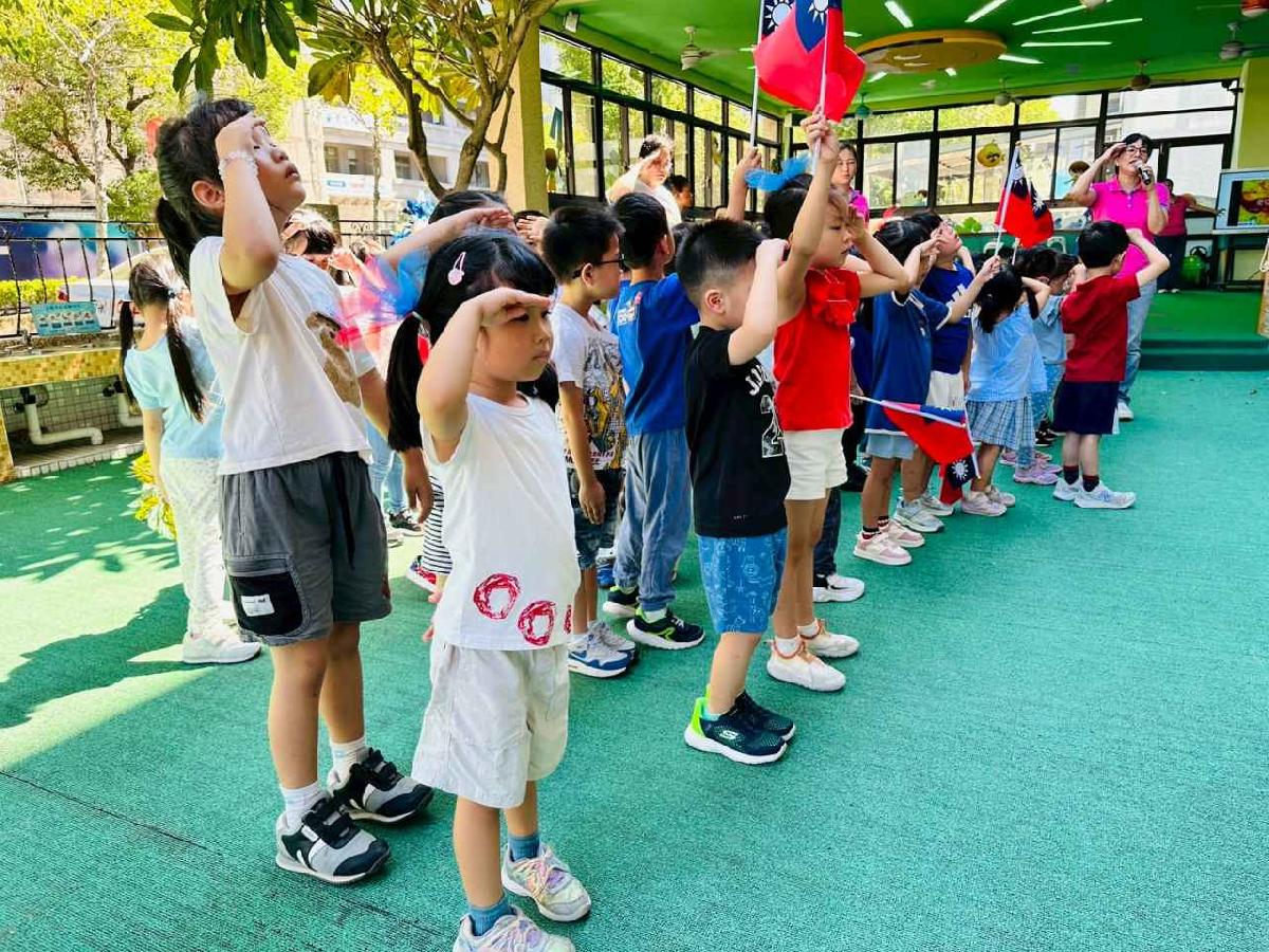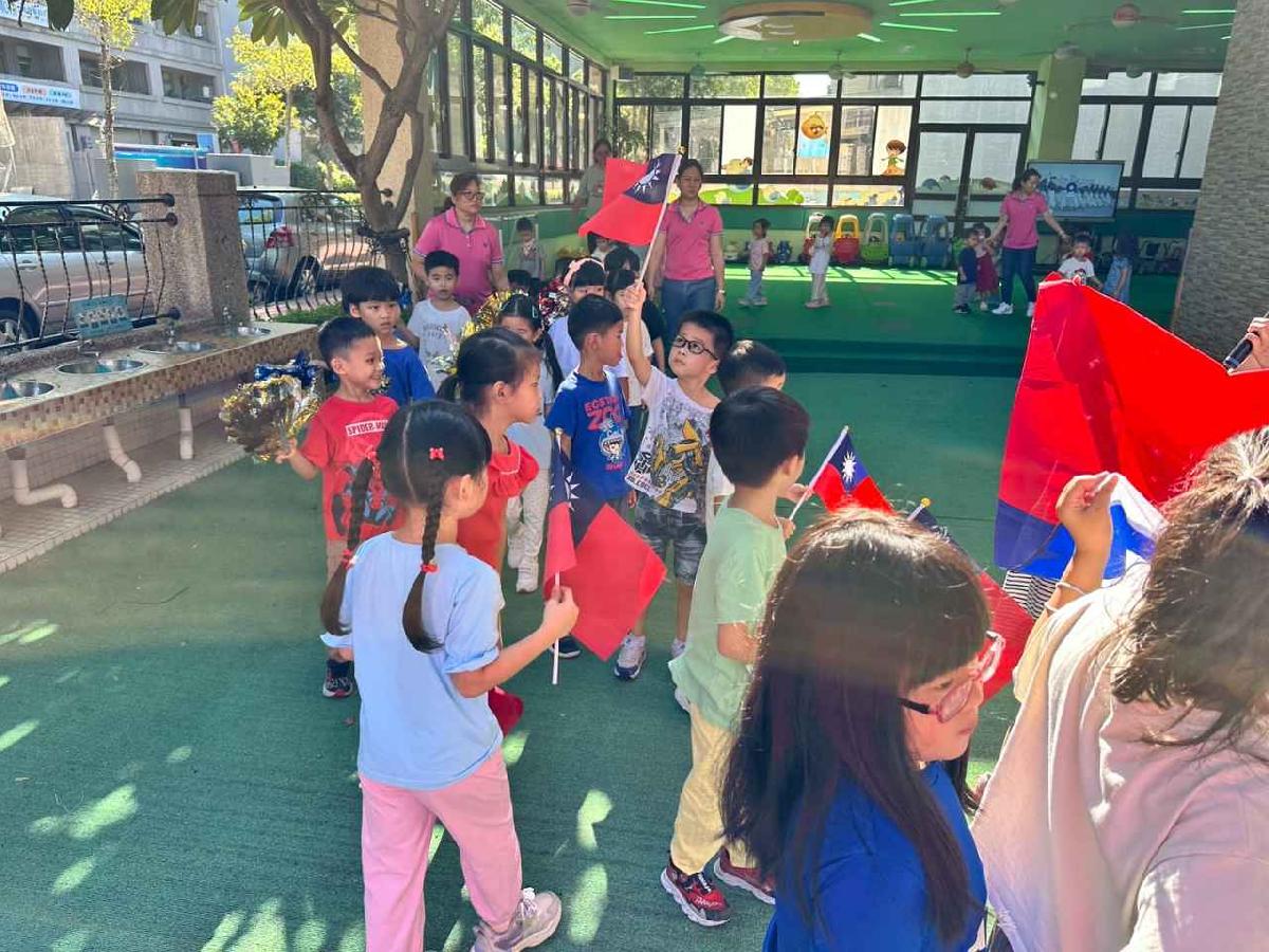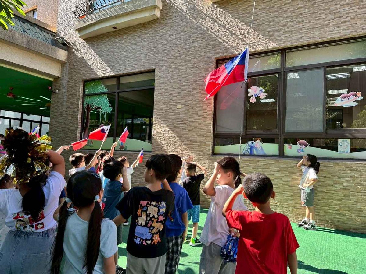 慶祝中華民國雙十國慶,本園舉行升旗典禮,帶領幼兒一同唱國歌、敬禮,培養愛國情懷,讓孩子們感受國家生日的喜悅與榮耀。