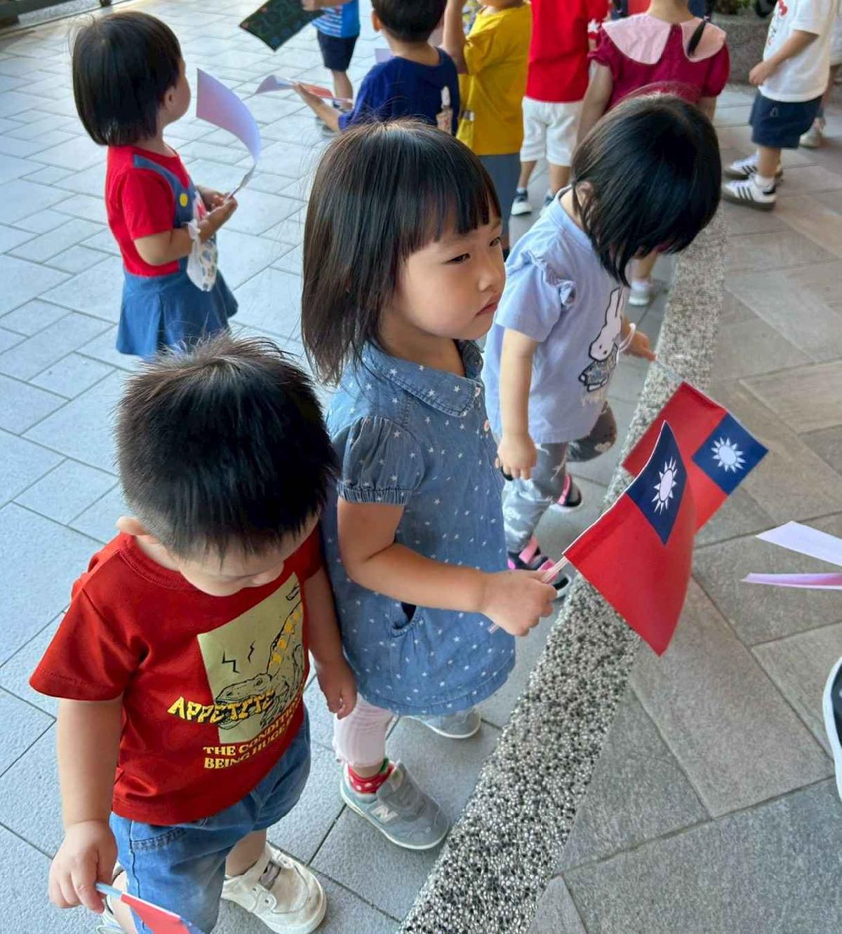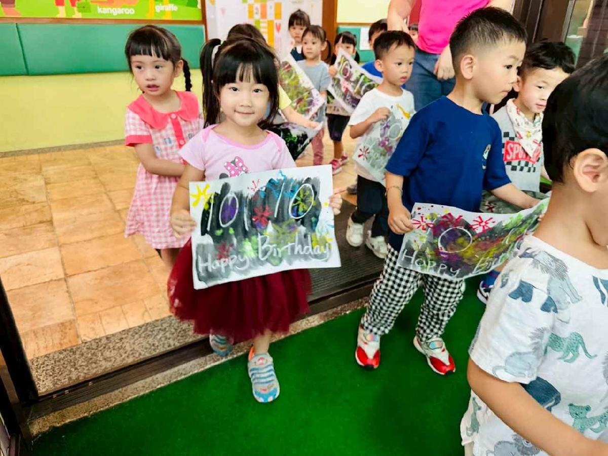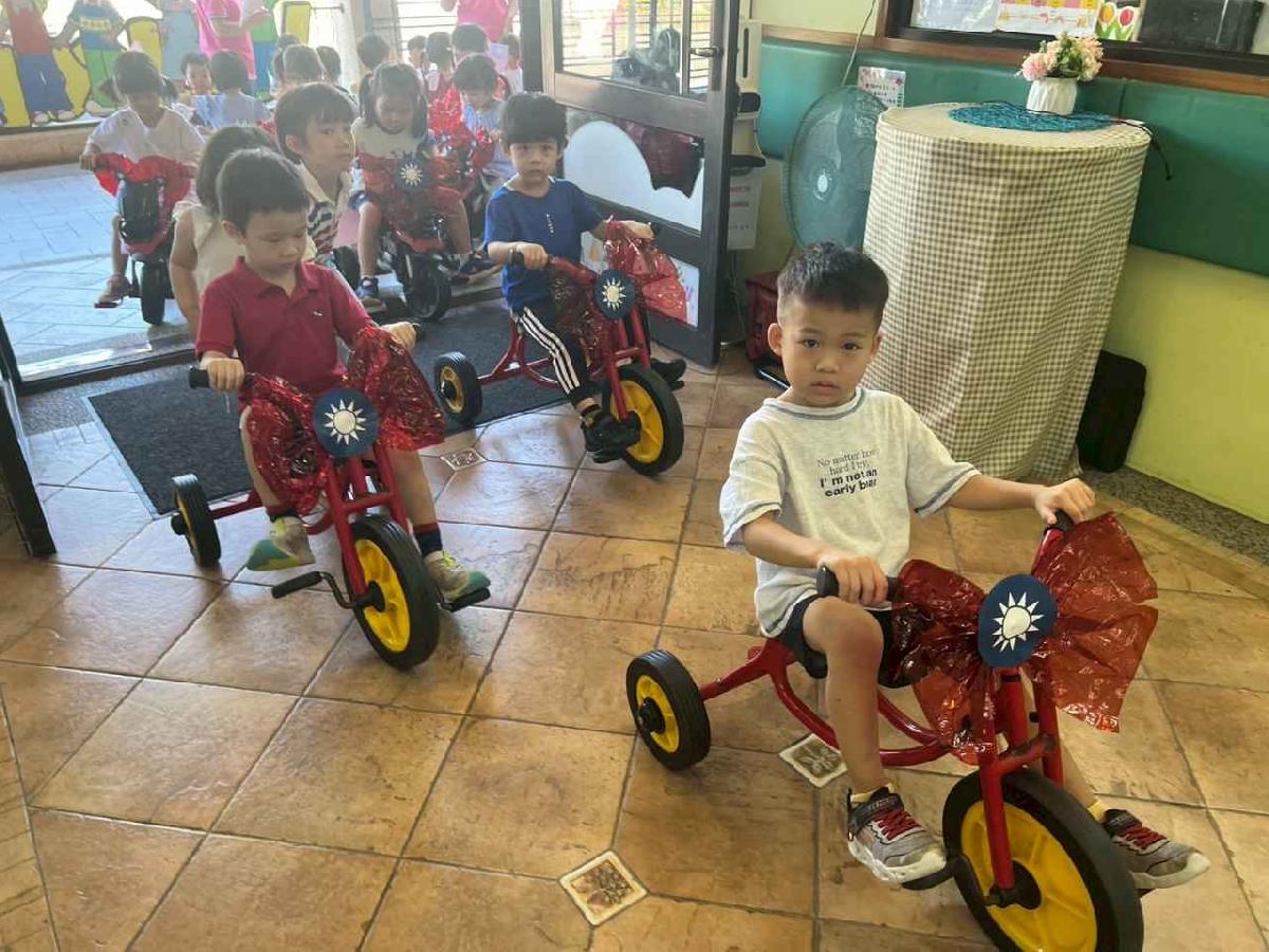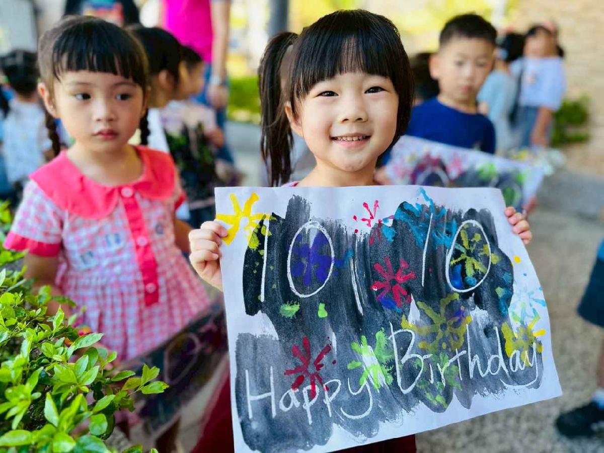 慶祝中華民國雙十國慶,本園舉行升旗典禮,帶領幼兒一同唱國歌、敬禮,培養愛國情懷,讓孩子們感受國家生日的喜悅與榮耀。