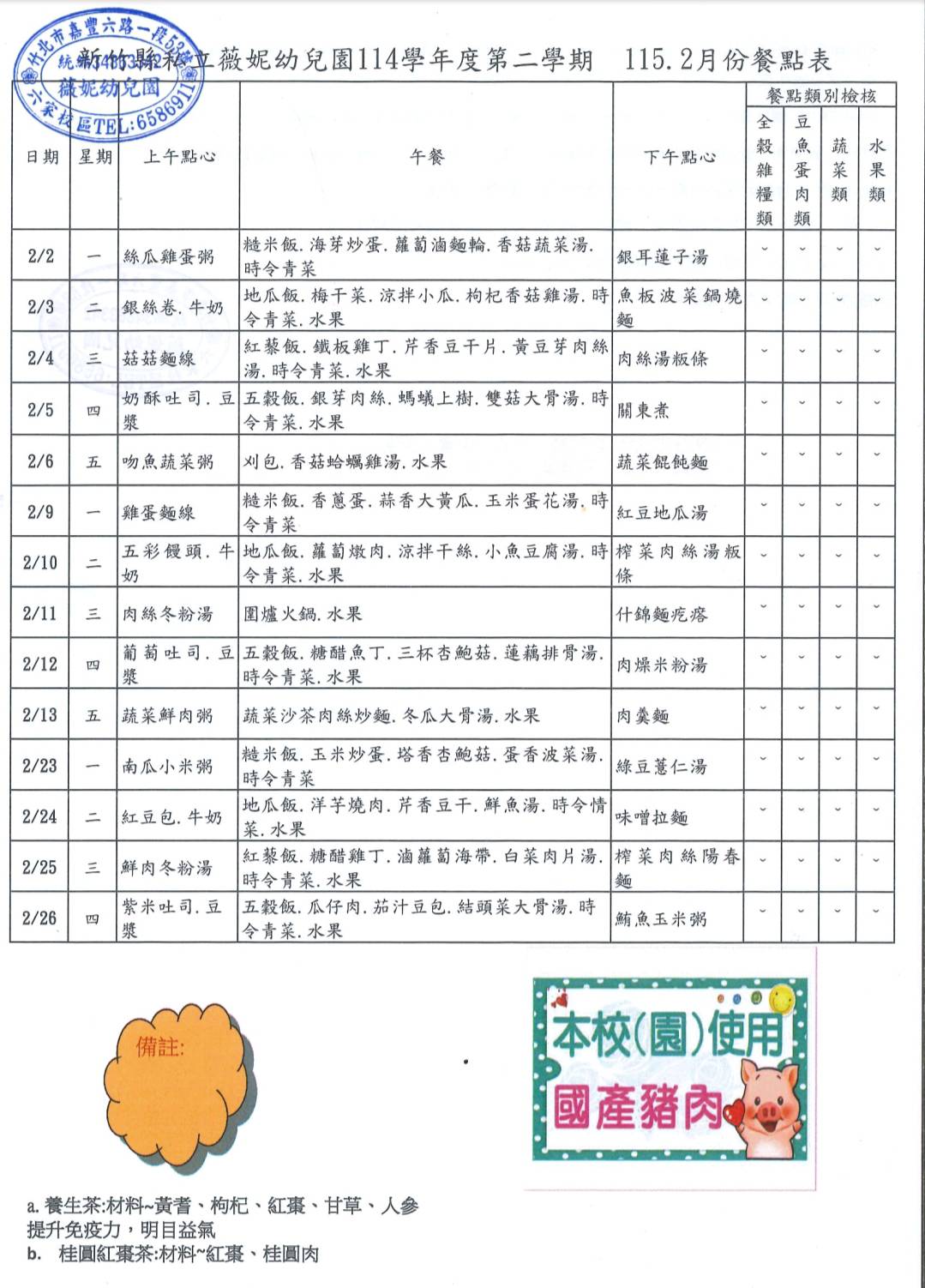 115年2月份營養菜單